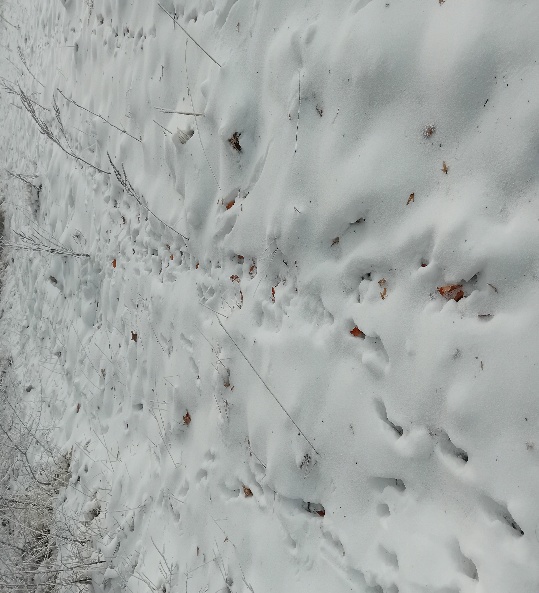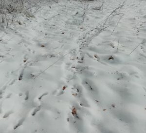 Die Blühfläche sieht im Winter auf den ersten Blicke eher ‚trostlos‘ aus. Viele Stängel vom Fenchel und anderen Stauden stehen noch bieten den Insekten Überwinterungsmöglichkeit bzw. den größeren Tieren Nahrung und Deckung. Die Tage mit Schnee zeigten dann auch anhand der Spuren, dass viele Tier die Fläche nutzen.